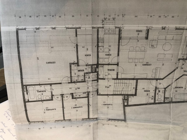 Inkomhal (7m²) . Drie slaapkamers (13-13-9,5m²) waarvan 1 met terras. Badkamer met ligbad en toilet (5m²). Apart gastentoilet. Ruime woonkamer met veel lichtinval (36m²). Geïnstalleerde keuken (9m²) met aansluitend een berging. Garage.